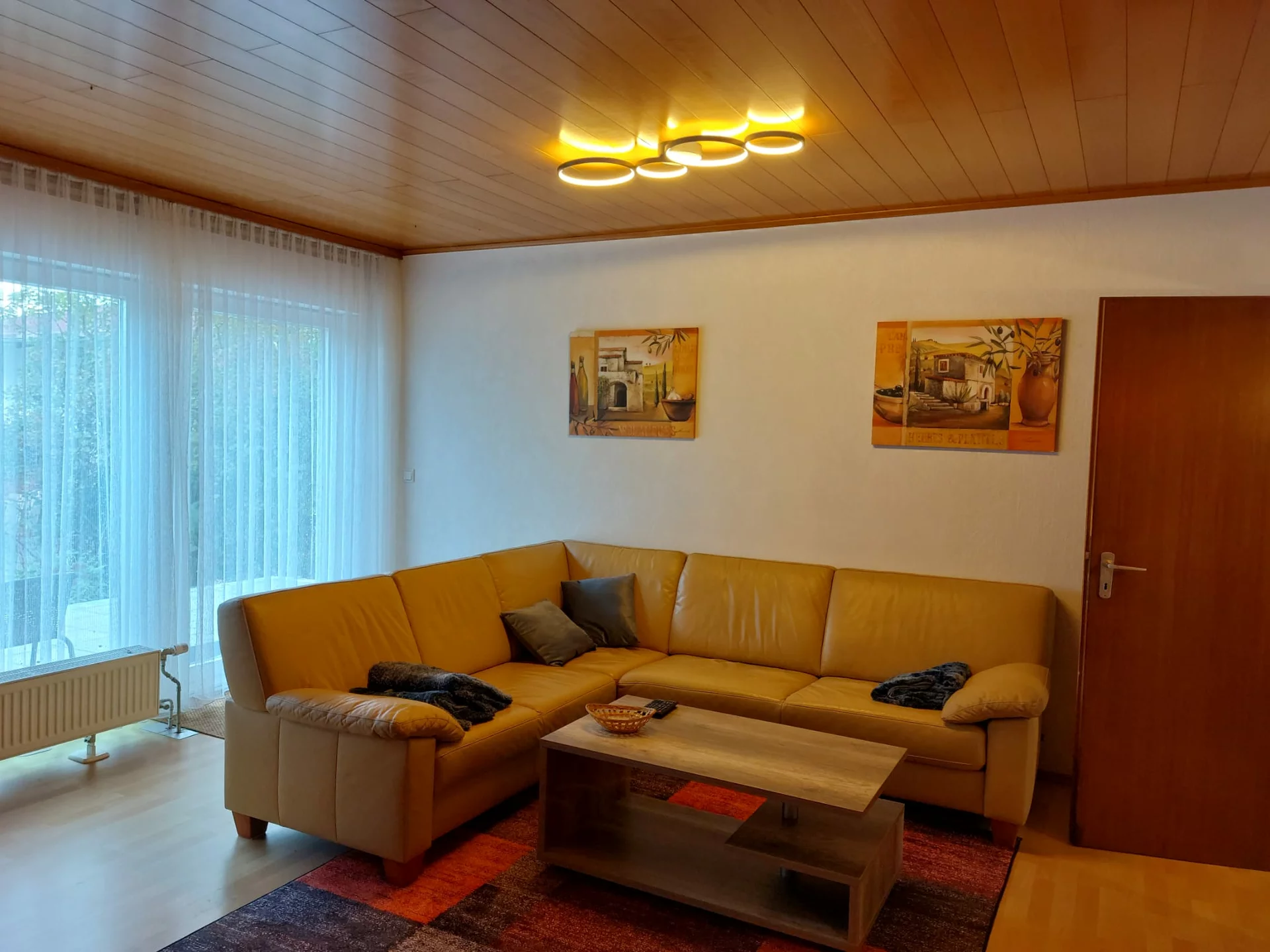 Das großzügige Wohnzimmer bildet das Herz der Wohnung. Mit einem bequemen Sofa, Satelliten-TV, Radio und kostenlosem WLAN lädt es zu entspannten Abenden, geselligen Stunden oder ruhigen Lesemomenten ein. Der offen gestaltete Wohn- und Essbereich schafft eine angenehme Atmosphäre und viel Platz zum Verweilen.